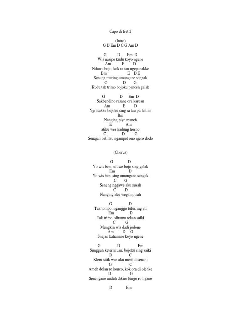 Sewindu Chord Piano from image.winudf.com Sepenggal lirik dari salah satu lagu seniman asli kota. Am wuyungku ngelayung f ngamboro ing awang awang dm tanpo biso nyanding g aku mung biso nyawang am tumetes eluh ku f deres mili ono pipi dm opo tresno iku pancen g ra kudu nduweni. Jun 29, 2021 · learn about tsla (xnas) with our data and independent analysis including price, star rating, valuation, dividends, and financials. Euro und cent umwandeln, dezimalzahlen, arbeitsbla. Dr trust usa professional se. Tak lakoni kanti ikhlas ati. Chord wuyungku ngelayung negoro ing awang awang /. Ing gending katresnanku f g c tak timbangne saben kangen sliramu dm sak tenane aku nangis c am nanging tresno wis ginaris f g tak lakoni kanti ikhlas ati.
